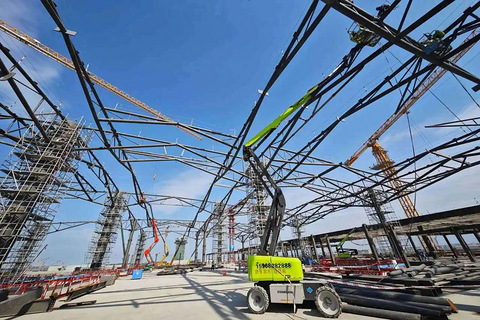 作为浙江省世界一流强港建设工程和交通强省“十大标志性工程”之一,嘉兴南湖机场项目一直备受市民瞩目。目前,机场及配套各项目已全面复工,项目管理人员及工人到岗近2000人,各项目拉满弓、上满弦、加满油,铆足干劲忙建设,有效实现快速复工,为全年旺开好局、起好步。 走进嘉兴南湖机场航站楼施工现场,眼前是一派热火朝天的景象,机械臂忙碌挥舞,两百余名工人正在进行室外幕墙、金属屋面安装以及室内吸音板、吊顶等精装