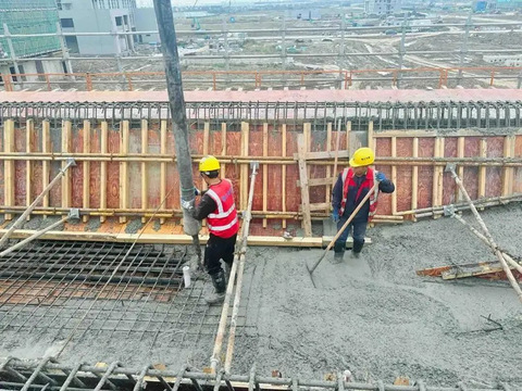 近日,在嘉兴南湖机场配套交通工程(机场连接线工程)施工现场,随着泵车将最后一车混凝土泵入模板,历时10个小时的航站楼进场专用道路26-29号墩现浇箱梁浇筑完成,这是航站楼进场专用道路完成的首联现浇箱梁,标志着工程正式步入下一阶段,为后续全线通车打下了坚实的基础。 混凝土泵车轰隆作响、建设工人们协同作战……顺着施工用梯,走上航站楼进场专用道路首联高架部分现浇箱梁混凝土浇筑的施工现场,映入眼帘的是一派