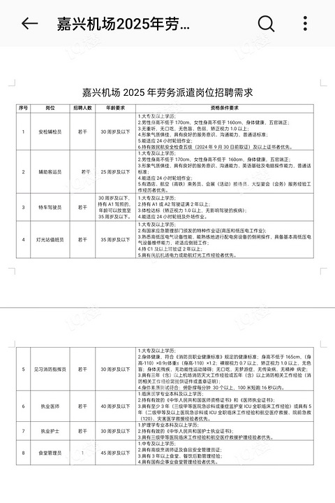 嘉兴机场招人了!大专起报,但是基本上都要30周岁以下…