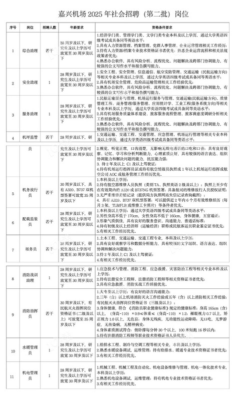 年底就要运营的嘉兴机场招聘进度越来越快了,这第三轮也来了,岗位不少,大专起报单基本还是要求本科以上学历,专业要求也高,只是看了这年龄,依旧是拦在了30岁门外,看来机场吃的也是年轻饭啊!不容易!