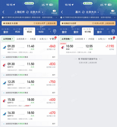 对比了一下嘉兴机场、虹桥机场、萧山机场的各个价位统一目的地北京寒假的机票看下来还是虹桥机场的最便宜啊你们会选择哪里飞? 嘉兴机场飞北京虹桥机场飞北京萧山机场飞北京 同一天的价位