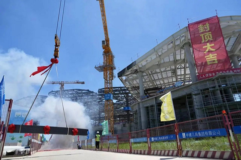 现场鞭炮齐鸣、人头攒动,耸立的建筑主体上“封顶大吉”的字样格外醒目……今天上午,走进嘉兴南湖机场主体工程施工现场,喜庆的气氛扑面而来,随着最后一根钢结构件起吊,嘉兴南湖机场航站楼主体钢结构正式完成封顶。 作为嘉兴南湖机场最重要的单体建筑,航站楼功能面积约2.59万平方米,共分为三层。第一层为到达层,设置远机位出发厅、远机位到达厅、行李提取厅、迎客厅、贵宾区等;第二层为到达夹层,设置连接登机桥和一