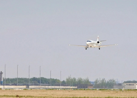 4月15日,嘉兴南湖机场迎来第一架飞机降落的历史性时刻。 上午11时50分,随着一架印有“中国民用航空局”字样的“奖状C560”校验飞机平稳降落在机场跑道,嘉兴南湖机场校飞工作正式启动,这标志着机场从“建起来”迈入“飞起来”的新阶段,距离通航更近一步。 嘉兴南湖机场开始校飞,共同见证这些精彩瞬间! 1. 飞机来了 校验飞机首次进入人们的视野,在机场上空飞过,进行飞机降落前的低空通场。这个环节是出于