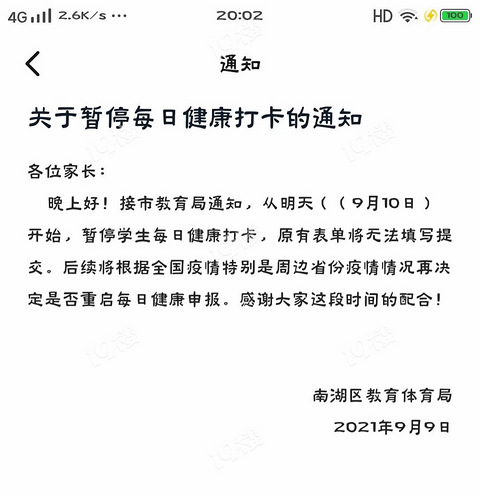 嘉兴教育局通知!9月10日开始不用再健康打卡了!