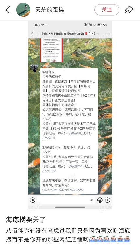 啥情况!八佰伴的海底捞发通知说停止营业了?难道是给牛new腾位置?我不同意!!!!虽然牛new我很爱,但是海底捞我也很爱啊!!! 就不能一起开着吗[/11大哭][/11大哭][/11大哭] 八佰伴前两天发撤店通知都没说海底捞不开……