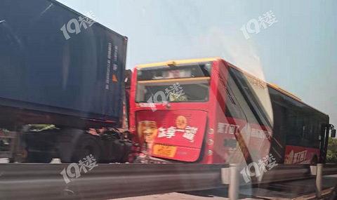 海宁,公交车和集装箱车发生交通事故。
