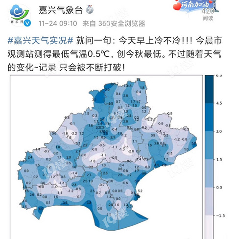 最新:今早0.5℃!是嘉兴今年最冷的一天!你有感觉吗?