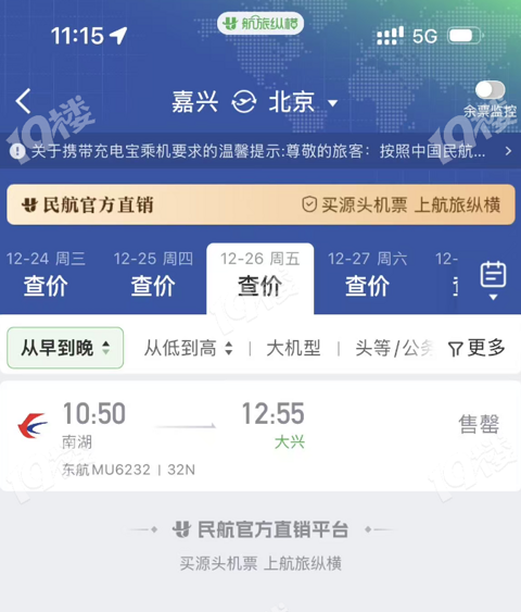12.11再更新: 刚刚再刷新一看,首日嘉兴飞北京的票已经售罄了!羡慕那些第一天就能从嘉门口出发去帝都滴人儿~ —— 一觉醒来天塌了,怎么涨到1000多了[/11大哭] 是嘉兴人民太热情都去买票了吗? —— 12月10日晚原贴: 嘉兴南湖机场已经有航班可以购票了!东方航空官网上,南湖机场—北京大兴机场的票有了,票价500不到! 想冲首日航班的,快去买了! 31号跨年去北京也安排起来了[/11酷]