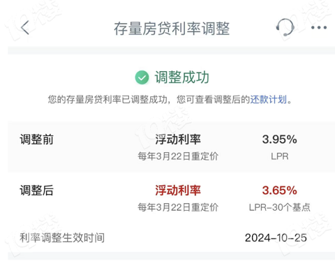 期待已久的10月25日!一觉醒来,房贷终于降了!从3.95到3.65,以后每个月少还60块~你们呢?(ps:都是自动调整的,咱自己不用操作)