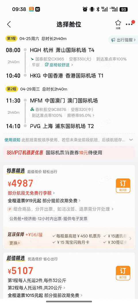 还好买的早,春假想带家里小孩去港澳玩一圈,之前买票一个人1200不到点,带行李额的。结果现在再一看,同样的航班没有行李额都直逼5000了!!!