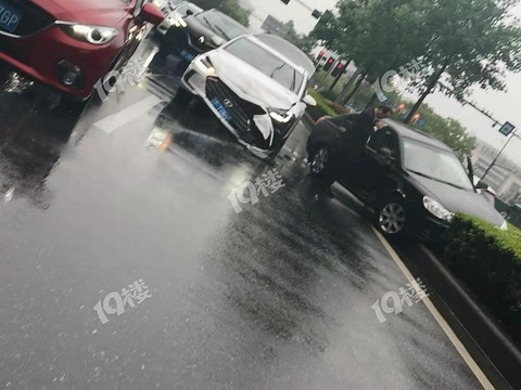 雨天事故多!老佛爷红绿灯这边,撞得有点厉害啊!