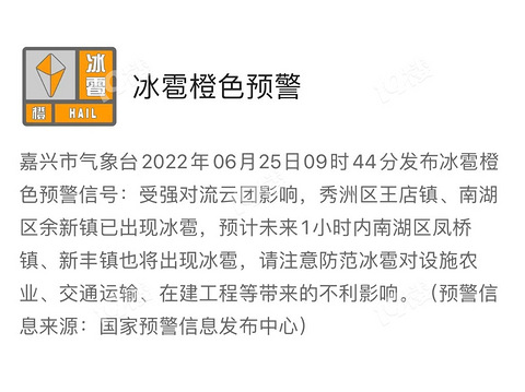 嘉兴发布冰雹橙色预警!王店、余新已经出现冰雹!