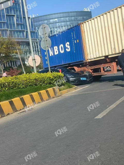 好吓人!嘉杭路高架下来,看到一大货车把保时捷夹了!