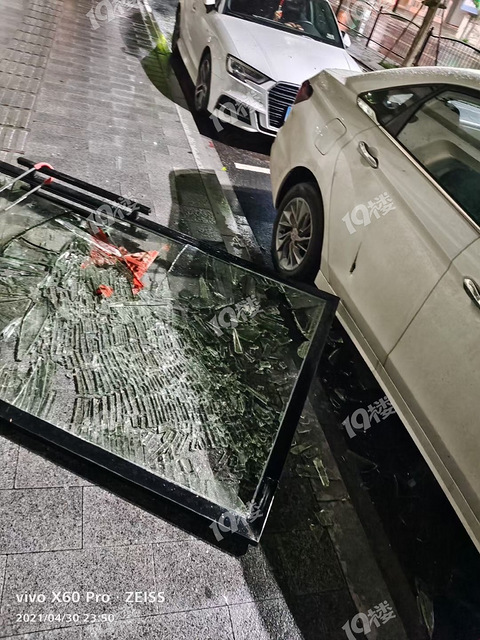 海宁,昨晚风、雨、冰雹、雷电的天气。受这样的天气因素影响,朋友圈看到有人的车门被玻璃门砸到了。