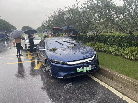 嘉兴雨天车祸!比亚迪汉错过路口原地倒车时被后车撞断轴,全责!