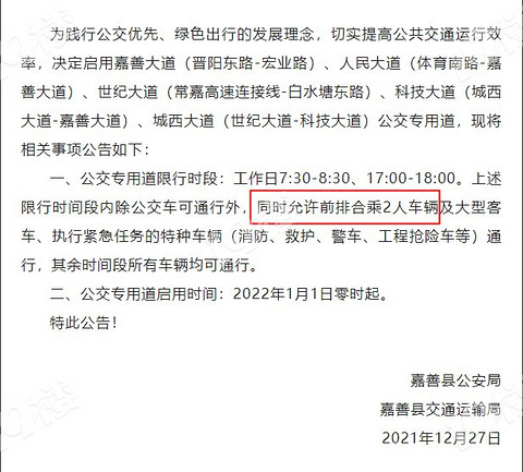 嘉善公交车道限行时是允许副驾坐人的车通行的,市区要不要跟进?