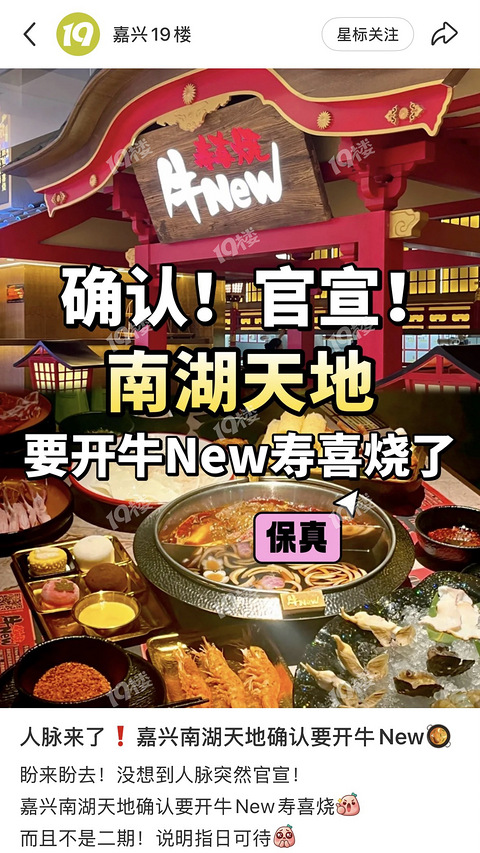 天呐!牛new终于要开到嘉兴市区来了,就在南湖天地!牛new爱好者终于不用跑到杭州上海去吃了! 希望早点开啊,等不及了!