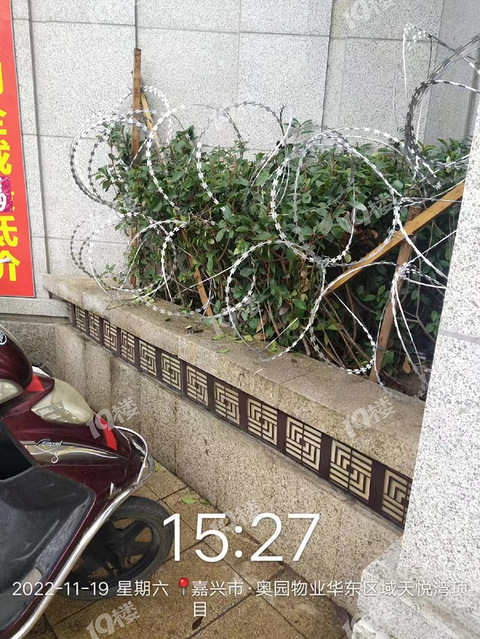 新塍天悦湾物业不知为了什么,竟然用上了滚笼刀片刺绳这种危险东西,搞的像监狱一样!还说业主素质差?