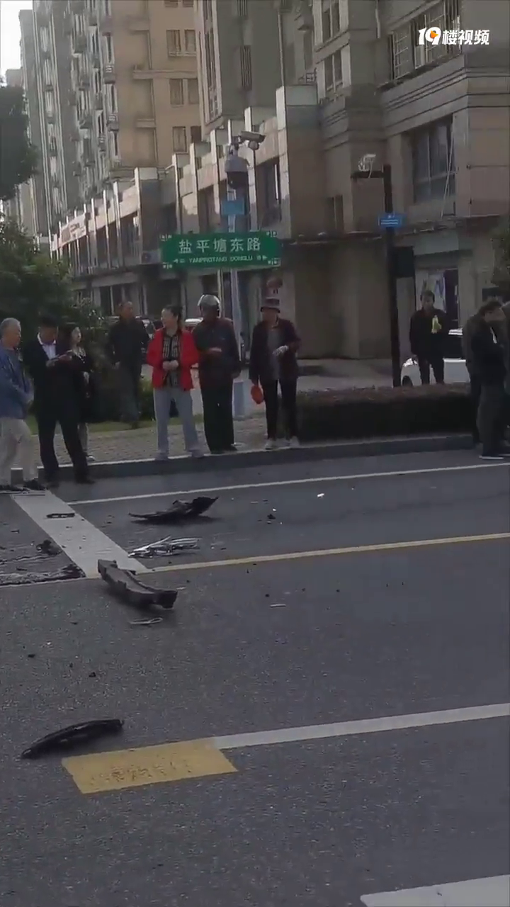 网友爆料:事发盐平塘东路,车子下巴都碎了一地,这撞得有点猛啊! 早上也有网友路过拍到了