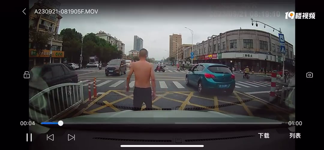昨天,海宁一路口,有男子对着车子,做出怪异举动。