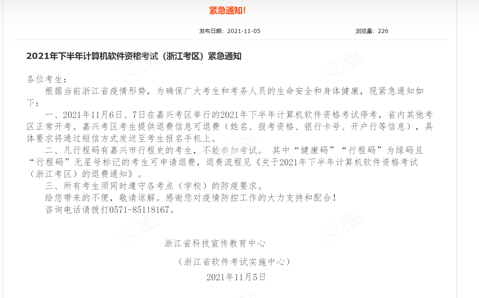 来通知了,周六周日嘉兴这边的计算机软考停考!