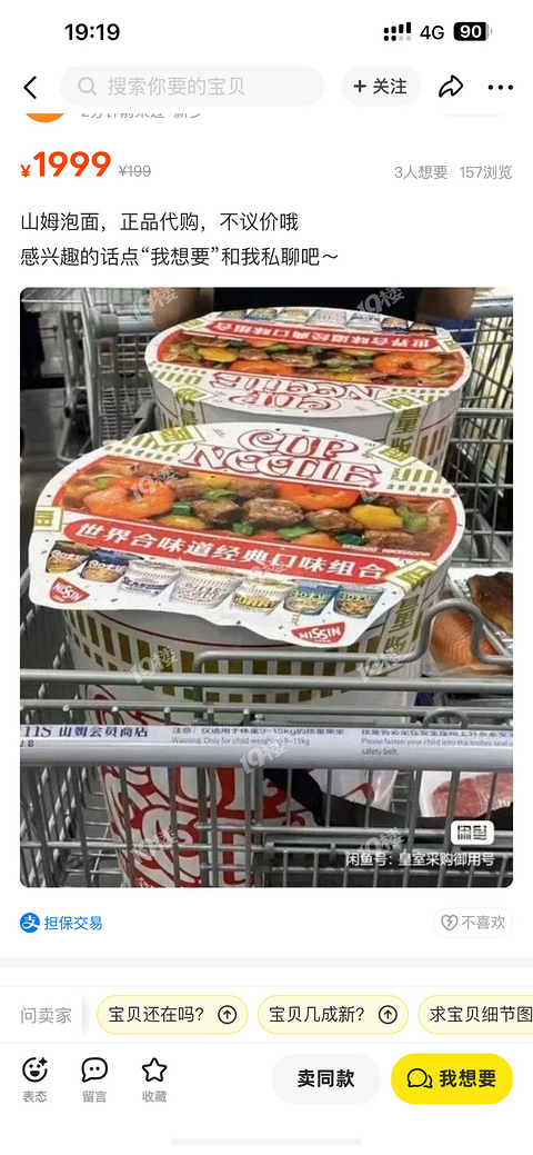 没想到方便面还会来个限量版24杯,关键黄牛还把面抄到了1999元,估计买这面的都是一些主播,或者网红,再看Pdd,我买12杯才30多元,这差了多少倍了,黄牛是真的厉害,无孔不入.