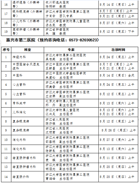 赶紧收藏!嘉兴市2022年8月沪杭专家出诊时间表来了!