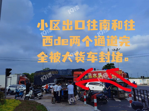 幸福家园被水果市场货车围堵好几天了 小区居民出行困难求救啊!