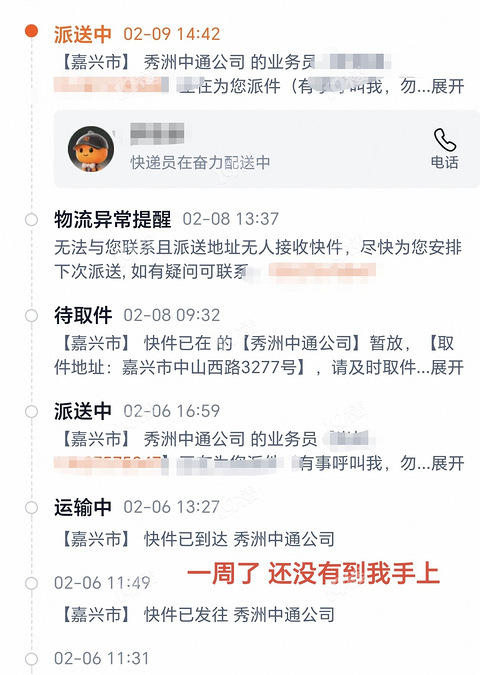 【后续】19楼已跟进! —— 【此前网友爆料】 嘉兴中通好神经啊!我的一个快递从深圳运到嘉兴了,突然说我所在的区域(南湖区)无法配送,未经我同意又给我退回去了!!!!我等了好几天的快递啊…联系卖家,卖家说他没召回,还问是不是我们这边有疫情… 气死我了!垃圾中通啊! —— 【19楼网友更多补充爆料】 @飞翔的椰蓉豆沙包:电话联系过了,网点已经倒闭,欠了员工几个月工资还没发,目前刚刚协商完成,最后一批