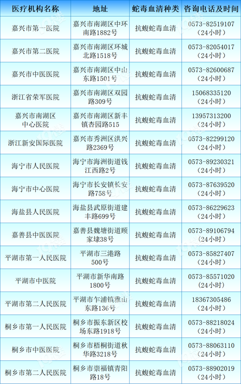 最新整理!嘉兴五县两区这些医院都有抗蛇毒血清!