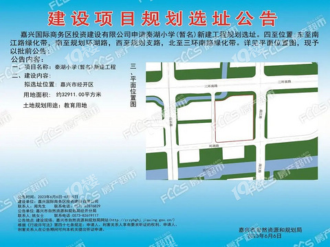 近日,秦湖小学(暂名)新建工程规划选址公示,这也意味着学校即将开建。 秦湖小学(暂名)位于国商高铁板块,南江路和三环南路交叉口,用地面积约32911平方米;隔着南江路东面,是规划秦湖中学,这两所学校是国商高铁三环南路以南区域内仅有的学校。目前秦湖学校(暂名)已完成设计方案中标公示,中标单位为浙江中房建筑设计研究院有限公司。 范围内涉及到的新房项目仅有臻颐府,高层均价20050元/㎡(含精装)。