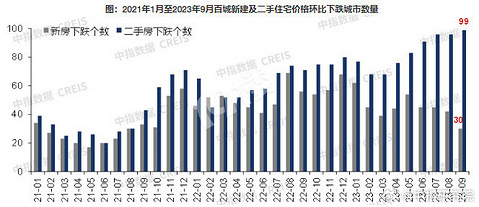 9月份部分城市受优质改善项目入市带动,新房价格止跌,百城新建住宅价格环比下跌城市数量降至30个。百城二手住宅价格环比下跌城市数量增至99个,已连续4个月超90城,