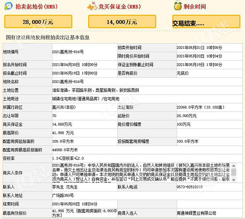 南通神辉4.19亿元竞得嘉兴秀洲区一住宅用地溢价49.64%