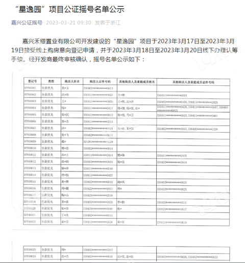 从2023年3月17日开始到3月19日,线上购房意向登记申请结束,3月18日到3月20日线下办理认筹手续。一共就392套预售房源,登记摇号名单超过一千人,而且绝大多数是全款,贷款寥寥无几。星逸园成为嘉兴首个启动公证摇号的新盘,真的是火啊!