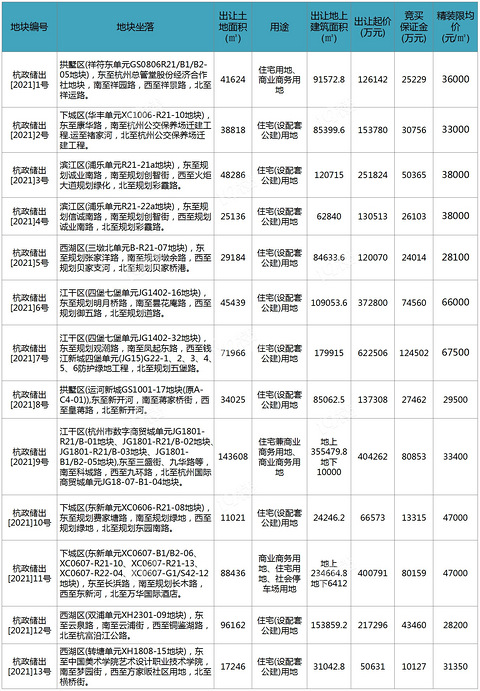 57宗地块将于5月7日-8日两天内集中出让,每隔10分钟竞拍一宗地第一批出让土地挂牌报价起始时间为4月27日8:30,截止时间为5月7日(8:30-16:30)-5月8日(8:30-15:20)各时段不等。其中,5月7日出让32宗,为主城区(13宗)、萧山区(12宗)、钱塘新区(7宗)的出让地块;5月8日出让25宗地块,临安区(12宗)、余杭区(7宗)和富阳区(6宗)。最先进入限时竞价环节的是杭钱