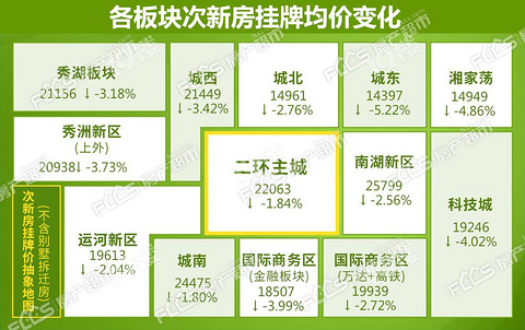 市本级各板块次新房挂牌均价均在降低!
