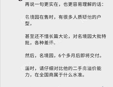 国商区未交付的某楼盘,现在外立面确实不错,可是大v说到很多人质疑它的户型各种差评,丝毫不会影响它的二手溢价能力。因为之前去看过这个楼盘,自己就很好奇。拿自住来说,我自己认为户型大于外立面。户型好的房子住起来舒服,外立面更多是给外面人看的。外立面铝板玻璃什么的属于锦上添花。但是在大v看来这个楼盘好像没有缺点。是真的很完美,还是大v别有深意。户型和外立面大家更看重什么