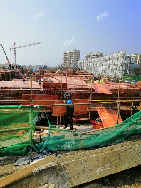 周末去看了一下,售房部在重新装修,新造的房子四周都围着,从工人进出的小口子往里看拍了一张照片,去年12月份拿地,速度真是够快了