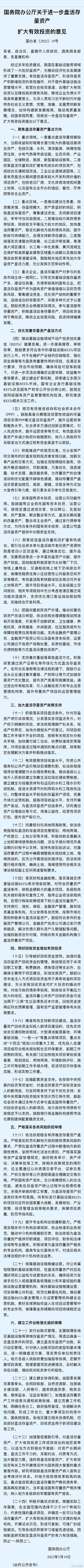 国办关于进一步盘活存量资产扩大有效投资的意见