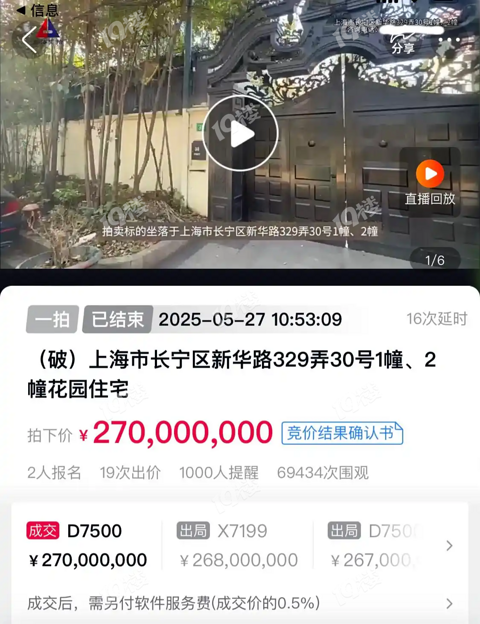 上海一套法拍房2.7亿成交# 单价超50万元/㎡!还得是沪爷啊!