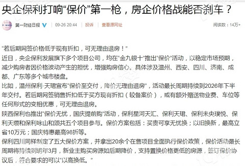 拐点到来?央企保利打响“保价”第一枪