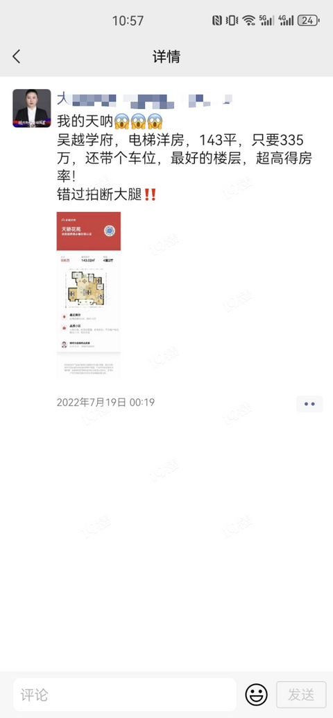 今天朋友圈刷到吴越洋房142平200万,想到了2022年在中介带领下看过一套吴越143,当年我记得她说不买拍断腿!现在想想都后怕,买了腿都给打断!!!