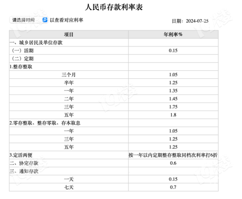 7月25日凌晨,工行、农行下调存款挂牌利率。随后建行、中行也跟进调降,利率、降幅与工农一致。 活期存款的年利率从0.2%下调到0.15%,下调了5个基点。 定期存款整存整取三个月、半年期、一年期利率均下调10个基点,调整后分别是1.05%、1.25%、1.35%;二年期、三年期、五年期利率分别下调20个基点,调整后的利率分别是1.45%、1.75%、1.8%。 定期存款零存整取、整存零取、存本取息