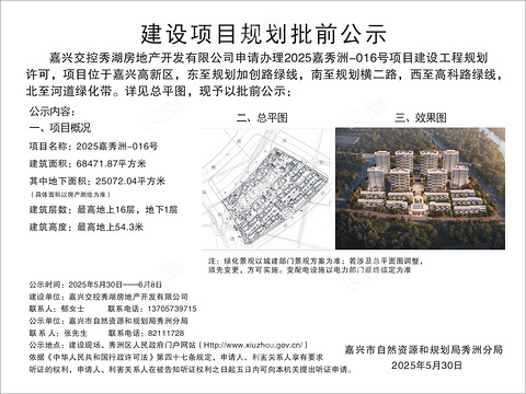 近日,2025嘉秀洲-016号地块案名公示,名为文澜府。项目位于秀湖西,东至加创路延伸段,南至横二路(规划道路),西至高科路延伸段,北至北元浜河道绿化带。用地面积28648平方米,建筑面积67471.87平方米。地块于今年5月6日成功出让,由嘉兴交控秀湖房地产开发有限公司以成交总价2.59亿元拿下。根据效果图来看,项目整体南低北高,南侧排布9幢低层产品,北侧排布8幢高层,小区中部设南北向景观轴线。