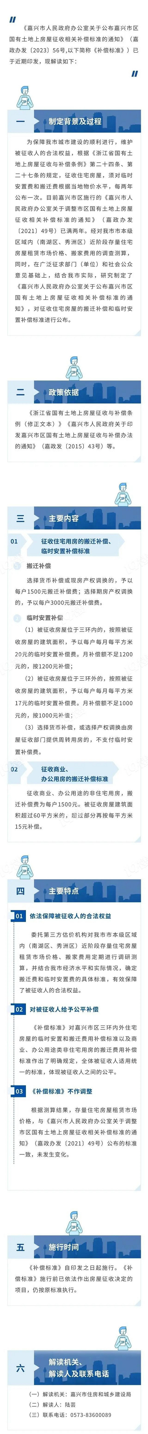 记者今天从市建设局获悉,嘉兴于近日印发了《嘉兴市区国有土地上房屋征收相关补偿标准》,保障嘉兴城市建设的顺利进行,维护被征收人的合法权益。据悉,根据《浙江省国有土地上房屋征收与补偿条例》第二十四条、第二十七条的规定,征收住宅房屋,须对临时安置费和搬迁费根据当地物价水平,每两年公布一次。目前嘉兴市区施行的《嘉兴市人民政府办公室关于调整市区国有土地上房屋征收相关补偿标准的通知》(嘉政办发〔2021〕49