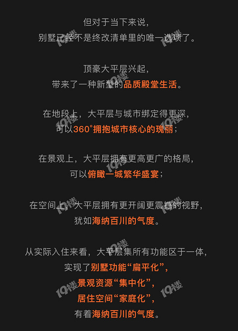 说的很有道理新一代豪宅大平层在各方面都优于别墅非要杠的话,豪宅独栋或者两连拼这种除非一般的小联排、小合院、小别墅,空间仄逼,采光面小,居住舒适度差,比不了新一代的豪宅大平层