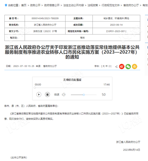 由浙江省人民政府办公厅印发的《浙江省人民政府办公厅关于印发浙江省推动落实常住地提供基本公共服务制度有序推进农业转移人口市民化实施方案(2023—2027年)的通知》中明确提到!放开放宽农业转移人口落户条件。全省(杭州市区除外)全面取消落户限制政策,确保外地与本地农业转移人口进城落户标准统一,试行以经常居住地登记户口制度,落实合法稳定住所(含租赁)落户及配偶等直系亲属随迁政策。 据说今年下半年还会有