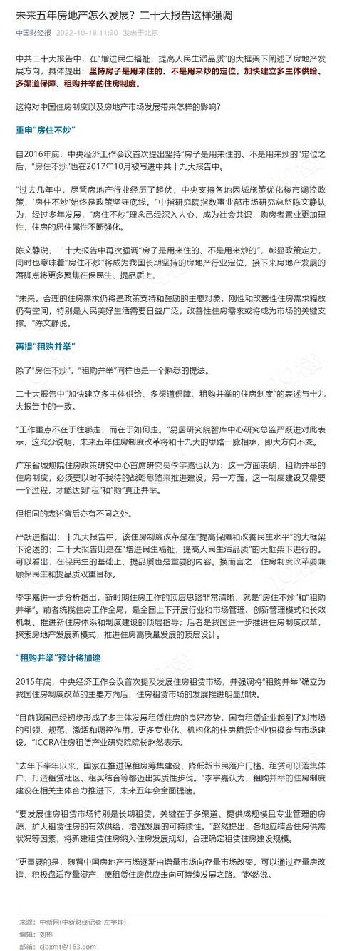 转:未来五年房地产怎么发展?二十大报告这样强调