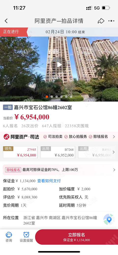 经历四次延时!宝石公馆这套法拍房定了!真的牛!单价上3.7W/㎡ 激烈竞价中,二次延时,价格破756万! 第一天就这么激烈,单价3.3多了,不服不行啊。让想看热闹的各位网友失望了