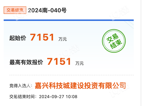 就在刚刚,嘉兴市本级土拍市场又有新动作,位于南湖区大桥镇的一宗安置房地块,即2024南-040号地块迎来网上竞拍。最终,由嘉兴科技城建设投资有限公司成功竞得,以7151万元的总价拿下该地块,折合楼面价约1901元/平方米,溢价率0%。 2024南-040号地块东至天香路,南临金家浜,西邻七沈公路,北邻老07省道,出让面积17098平方米,为主要用于安置的二类居住用地,配建商业计容建筑面积在800至